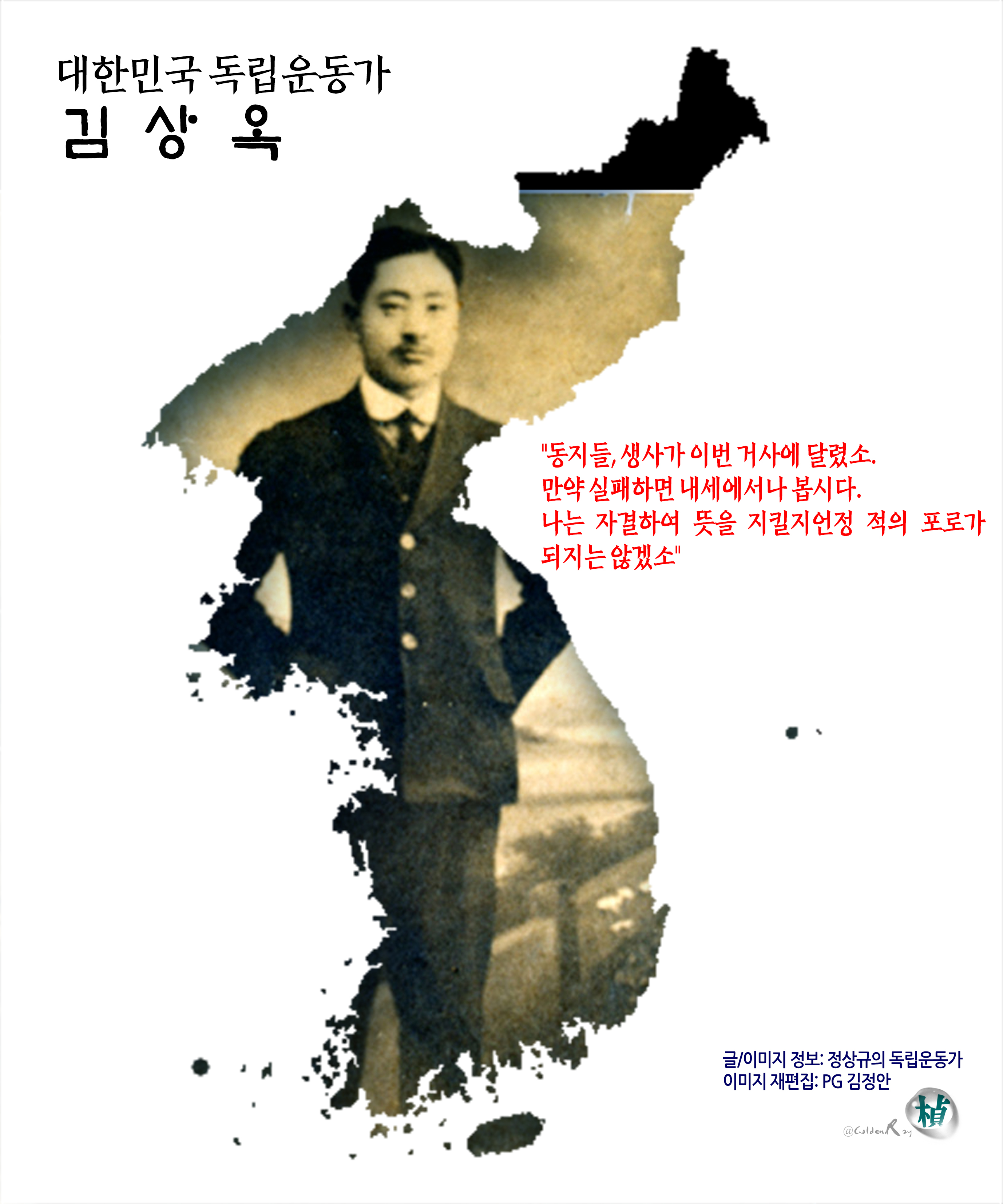 일본 철혈통치의 핵심인 종로경찰서에 폭탄을 투척하고 천여명의 일본 군경에 혼자 맞서 총격전을 벌일 정도의 인물임에도 안타깝게도 대중들에게는 별로 잘 알려져 있지 않다. 대중매체에서도 별로 다뤄지지 않았었습니다. 처음 독립운동가 앱을 제작하던 때 이런인물의 삶 자체가 영화인데 왜 이런분을 다루는 영화가 없을까를 주변에 말하곤 했는데 영화 <암살>과 <밀정>이 나오면서 김상옥 의사가 대중에게 알려지자 누구보다 기뻤습니다.